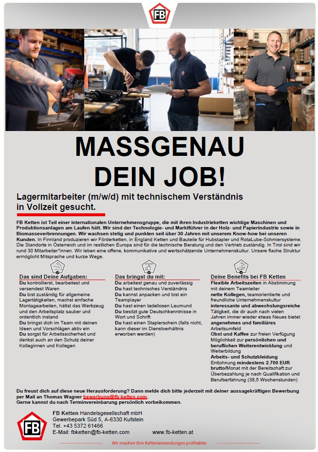 Offene Stelle als Lagermitarbeiter / Lagermitarbeiterin bei FB Ketten